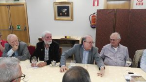 El pasado miércoles 16 de octubre, el Foro Milicia y Democracia (FMD) celebró una comida, seguida de coloquio, con José Luis Villacañas Berlanga, catedrático de Historia de la Filosofía de la Universidad Complutense de Madrid. El profesor Villacañas es además autor de numerosos artículos, ensayos, novelas y libros de historia. El encuentro con este filósofo se enmarca en las actividades culturales que el FMD lleva a cabo regularmente. La larga y agradable sobremesa sirvió para preguntar e intercambiar puntos de vista con nuestro ilustre invitado y poder escuchar su análisis sobre temas históricos y de actualidad.